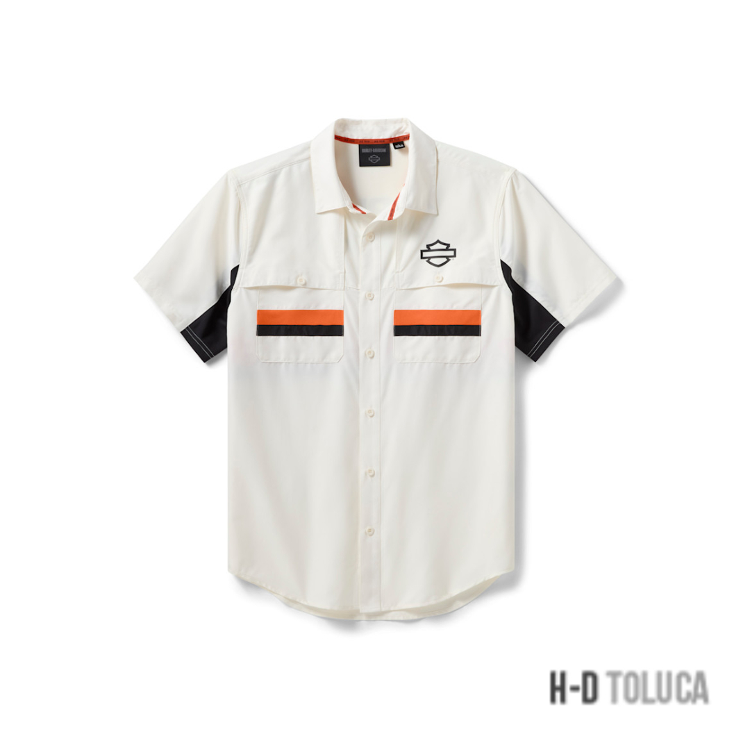 La camisa H-D® TECH Vented Short Sleeve ofrece ventilación y comodidad, con un estilo que se adapta a cualquier ocasión. Te mantiene fresco gracias a su confección en poliéster ripstop y malla, que absorbe la humedad y se seca rápidamente