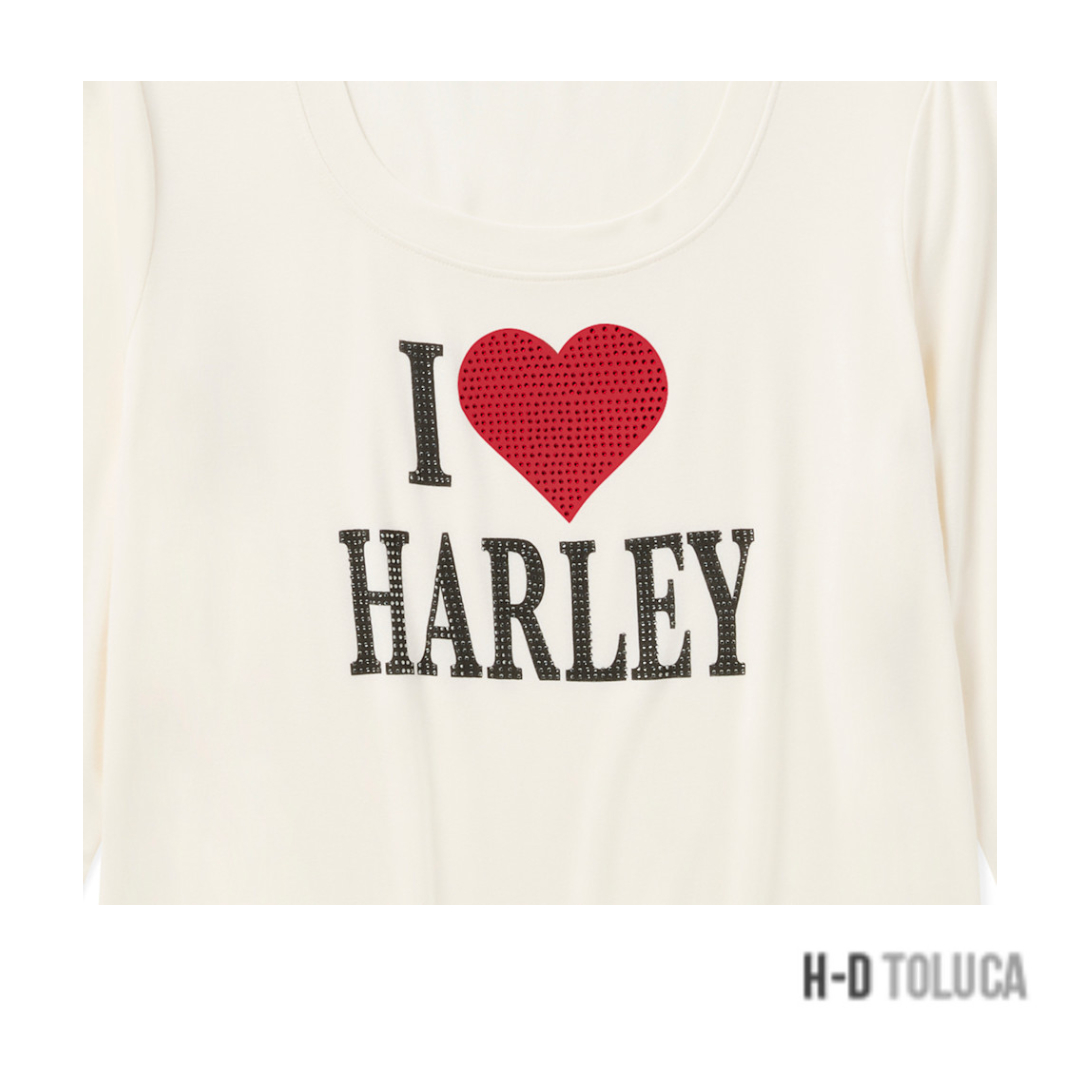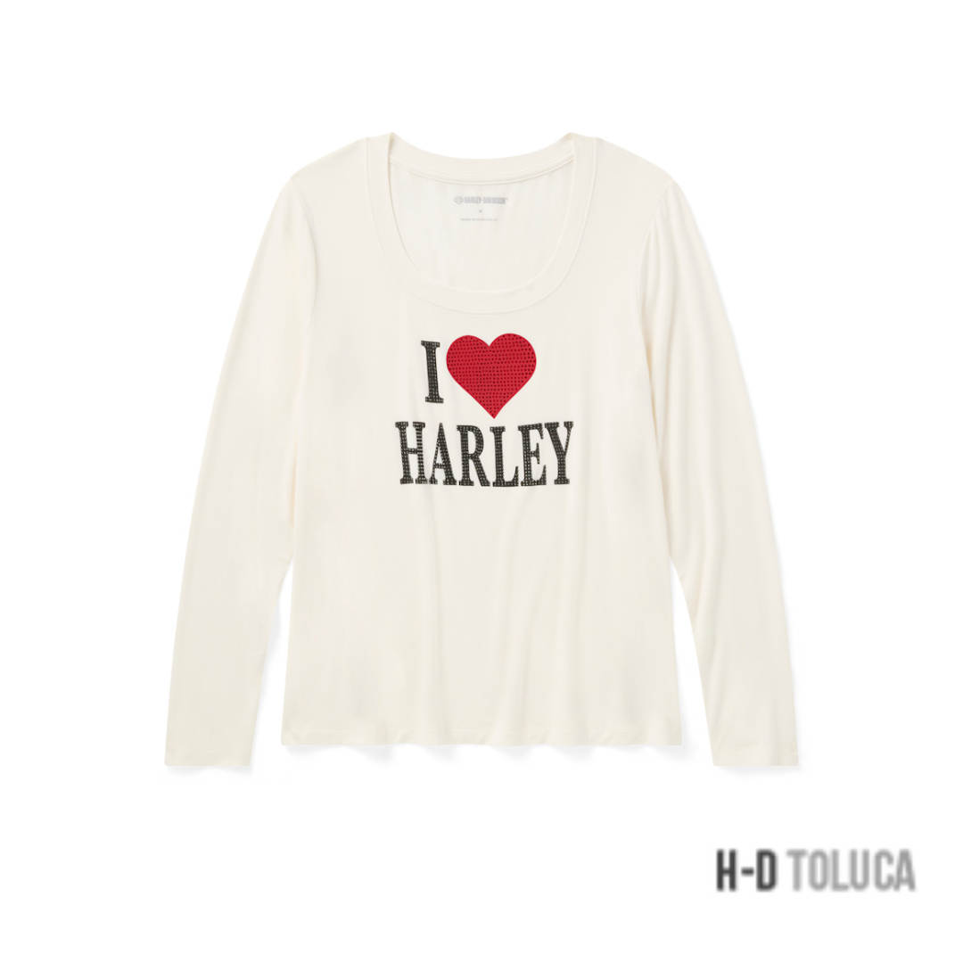 CAMISETA BLING I LOVE HARLEY LONG SLEEVE PARA MUJER – CLOUD DANCER