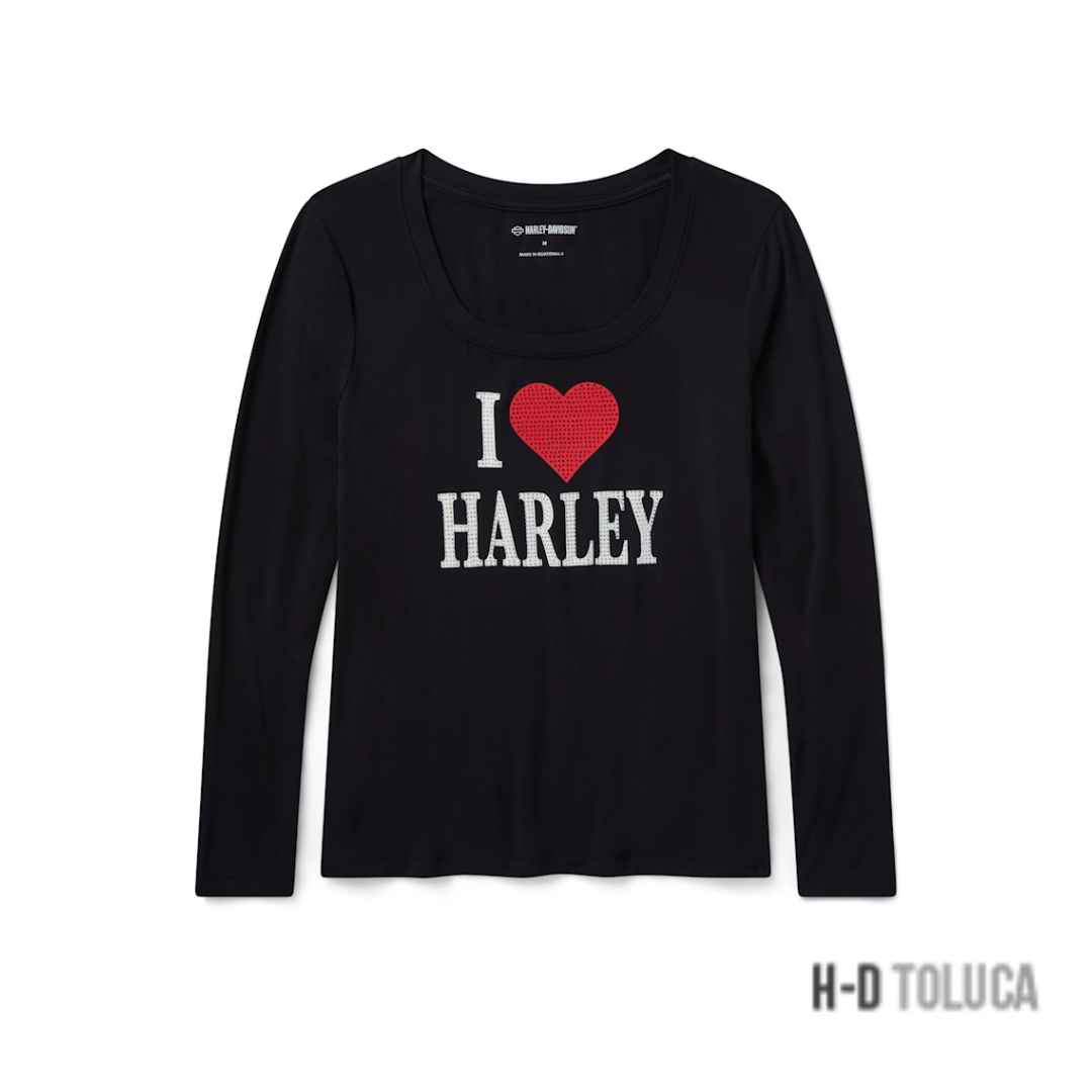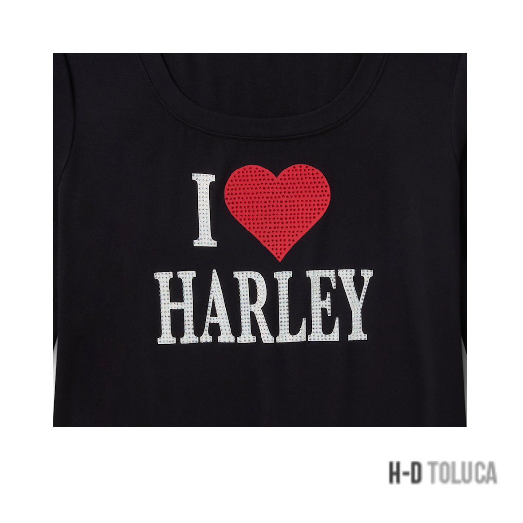 CAMISETA BLING I LOVE HARLEY LONG SLEEVE PARA MUJER – HARLEY BLACK