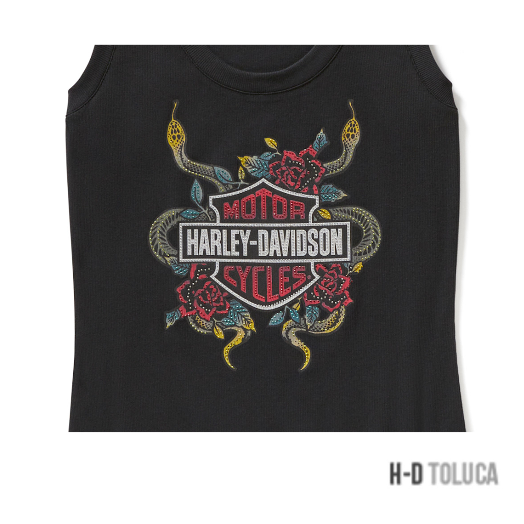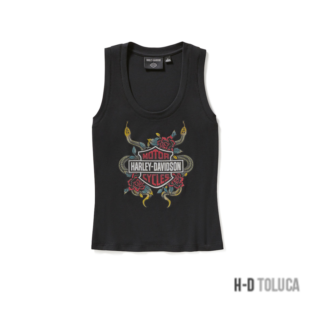 CAMISETA SIN MANGAS SERPENT ROSE BLING RIBBED – HARLEY BLACK