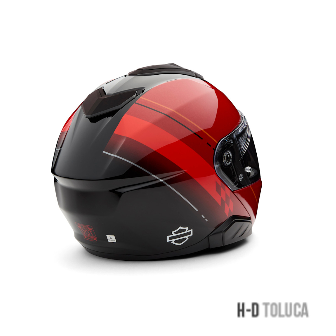 El estilo vibrante, la comodidad y la visibilidad se combinan en nuestro nuevo casco H-D™ Capstone Sun Shield III H35 Modular. Su avanzado sistema de ventilación brinda un flujo de aire de adelante hacia atrás para eliminar el calor y la humedad durante tus viajes. Este casco para motocicleta también tiene una visera dinámica con múltiples posiciones para brindar mayor visibilidad en diferentes condiciones de luz.