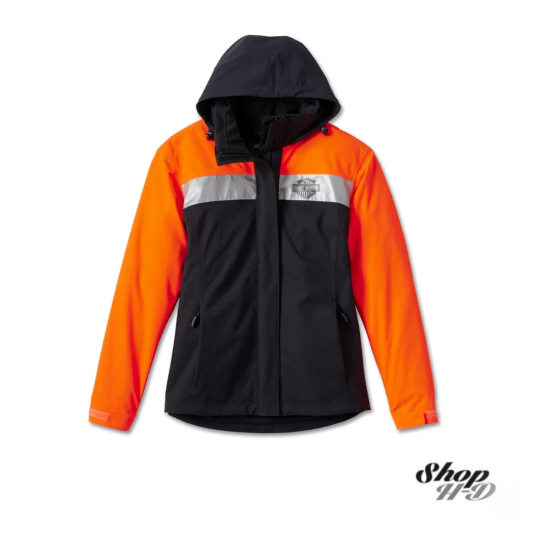 • Características adicionales: Recorte reflectante 3M Scotchlite que brinda mayor visibilidad. La capucha ajustable y que se puede usar con casco se guarda en el cuello. Toda la chamarra se guarda en el bolsillo interior con cremallera.