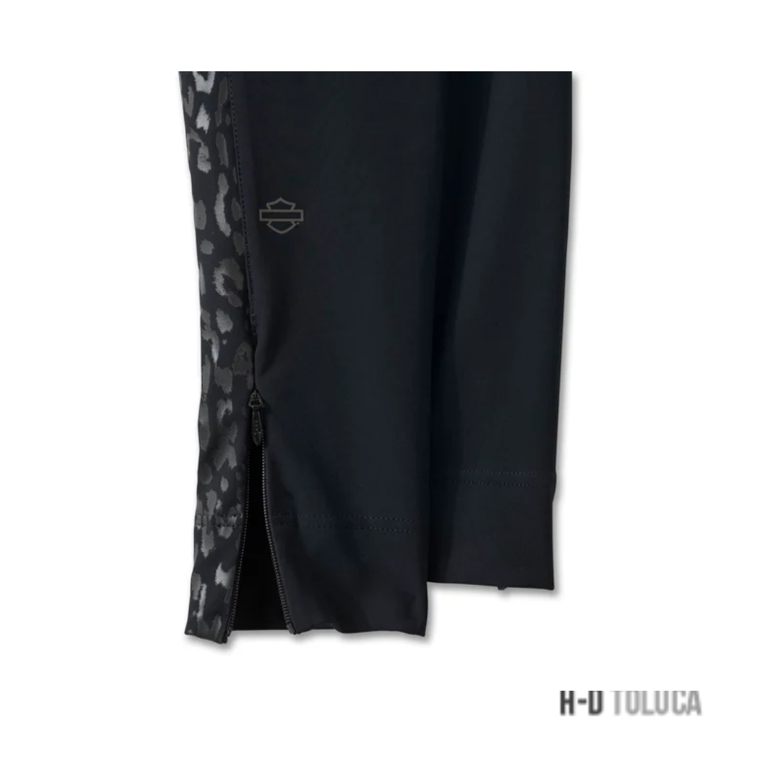La funcionalidad se combina con el estilo animal print en nuestro H-D Skinny Riding Pant de edición limitada. Confeccionado con una mezcla de tejido elastizado y pesado que acompaña tus movimientos. Diseño de cintura alta que te ofrece una mayor cobertura cuando conduces. Tiene un diseño que favorece la figura e incluye protección D30 Ghost Armor contra impactos en las caderas y rodillas, y material reflectante para una mayor visibilidad. Los tobillos con cremallera permiten adaptarlos a las botas de montar y la cintura elástica ofrece mayor comodidad. Paneles laterales con estampado de guepardo y un detalle de nuestro Bar & Shield abierto en la pierna (ampliar la imagen para ver mejor). Pídela ahora, ya que las cantidades son limitadas.