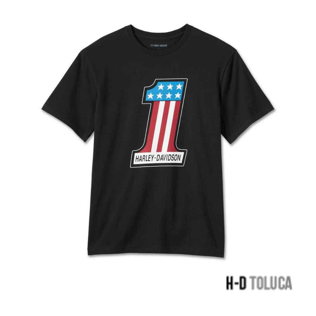 Harley-Davidson® Men’s #1 Racing Short Sleeve Tee – Black, 99071-24VM. Made from 100% cotton. Rib-knit neckline to keep its shape