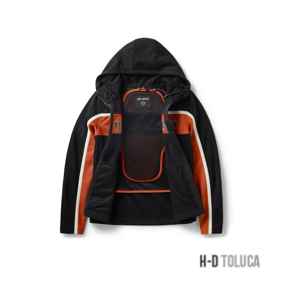 El estilo informal se combina con una protección mejorada en la nueva sudadera con capucha H-D® Trenton Deflector 2.0 Hooded Riding Fleece. Diseño resistente al viento con numerosas características, como ventilaciones que permiten la circulación del aire, material reflectante para mejorar la visibilidad y un bolsillo con cremallera para llevar lo esencial. Esta prenda, confeccionada con poliéster grueso, incluye protección D3O® Ghost™ Armor en los hombros y los codos para amortiguar los impactos