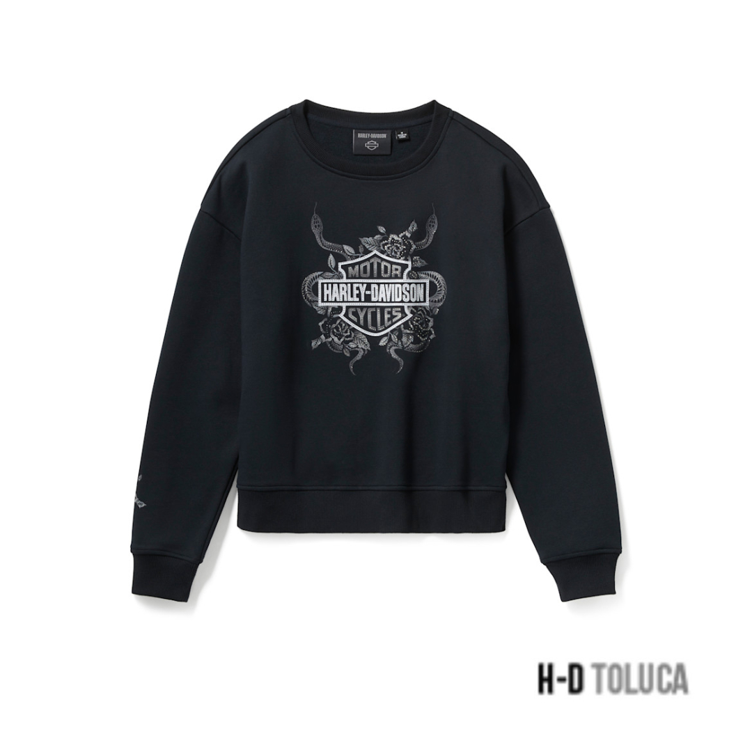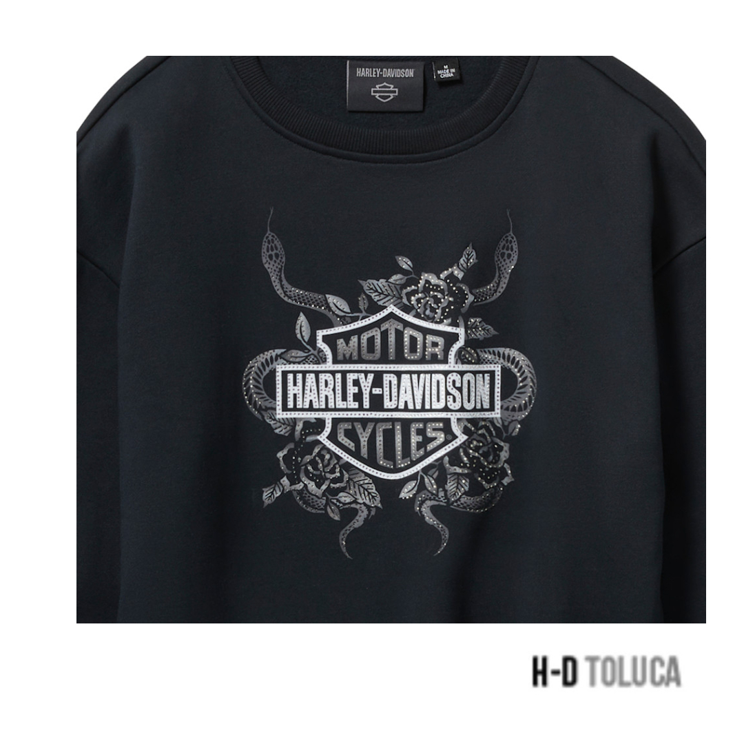 SUDADERA SERPENT ROSE BLING FLEECE – HARLEY BLACK